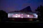 Externally, the visitor will see a fragile shell suspended on large quarry stones. This shell – white, translucent and made of fibreglass – will house an interior organised around an empty patio, from where the natural setting will appear lower, giving the sensation that the entire volume is floating. At night, thanks to the semi-transparency of the shell, the amber tinted light will attract the attention of passers-by, like lamps attracting moths.