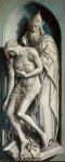 When Jochen Sander, the museum’s deputy director and curator of German, Dutch and Flemish paintings before 1800, is showing me round the Old Masters wing, we stop just before the entrance, where the walls are densely covered with paintings on either side of the main door. ‘Really the bulk was sold in the early 19th century,’ he says, ‘but we wanted to have this way of remembering that until the 20th century, the aesthetic of presenting painting was completely different – it was much more symmetrical and ordered, highlighting the top pieces.’ Here he points to a pair of Frans Hals portraits, before picking out a brothel scene by the Brunswick Monogrammist – ‘a sort of proto-Brueghel scene,’ he says, ‘a wonderful painting’. Once you walk through the double doors and into a vestibule, the museum puts the highlights of its collection right in front of you: here are the Flémalle Panels (c. 1428–30), for instance – three oil paintings depicting a Saint Veronica, Madonna with Child, and Mercy Seat from an otherwise lost altarpiece – which were once attributed to the Master of Flémalle, but are now thought to be by several hands, including Rogier van der Weyden, in the workshop of Robert Campin. The sculptural trompe l’oeil of the Mercy Seat, in which Christ seems about to slump out of the frame, is particularly striking.