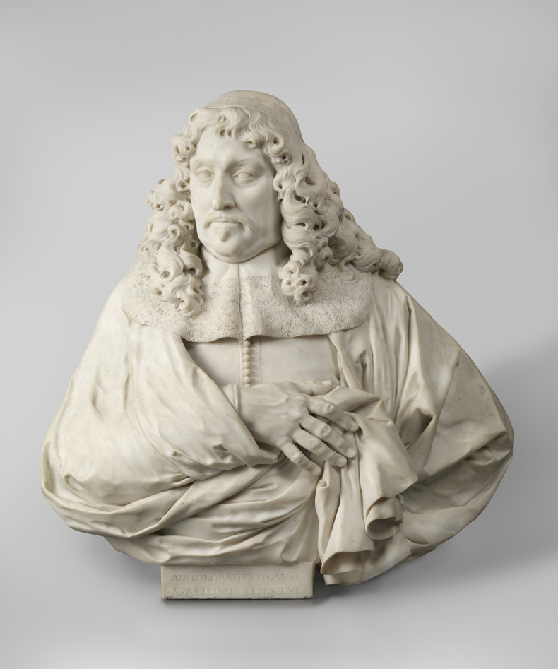 Finally, an honour guard of burgomasters’ portrait busts flanks the central Citizens’ Hall. Here Quellinus’s Bust of Andries de Graeff (1661) reigns supreme in its evocation of Bernini’s ‘speaking likeness’, the Finelli-like skill in evoking drapery and lace, and the energetic drill work of the wig.