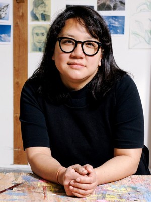 The British artist’s first solo museum exhibition in the United States includes characteristically layered works that dwell on the themes of memory and emotion