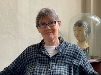 The artist blasts country music at full volume and thumbs through a Nan Goldin catalogue while working at her home studio in Notting Hill Gate