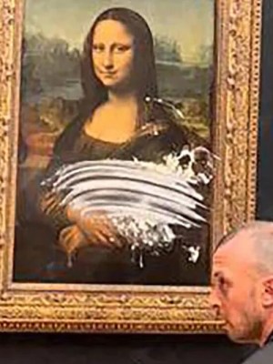 The Mona Lisa has been smeared with cream cake in an inscrutable act of climate protest