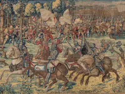 This cycle of seven colossal tapestries, which plunges the viewer into the thick of a 16th-century battle, is on display in its entirety for the first time in the United States