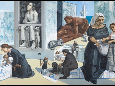 Spot Judith, Delilah, the Virgin Mary – and museum staff – in a monumental mural inspired by a 15th-century altarpiece