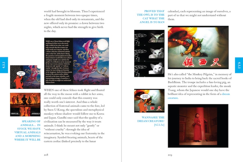 The book makes an admirable and intelligent attempt to recreate on the page the arboreal architecture by which the CD-ROM was organised and could be explored. The zones are now chapters. Each distinct screen is reproduced in the form of thumbnail photographs, followed by the text that had accompanied them. Where Marker had superimposed this text on the image, we see a photograph of this too.