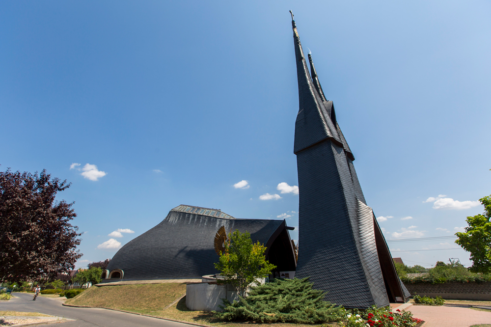 Church of the Holy Spirit in Paks, Hungary, designed by Imre Makovecz and built in 1991