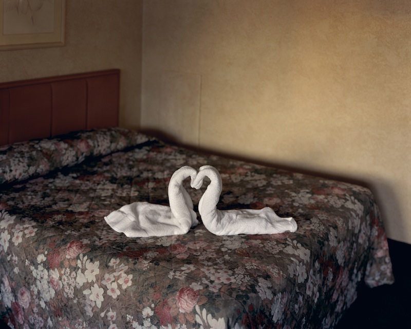 The adjectives that come to mind for Soth’s work are those that sum up his ability, and his desire, to take his subjects on their own terms without flattering or patronising them: honesty and tenderness. With a few exceptions – particularly in Broken Manual’s hermits and loners – his subjects are bearers of a distinctly quotidian oddness. From the 2004 series Sleeping by the Mississippi, the photo Bonnie (with a photograph of an angel) has its subject clutching a snap of a vaguely winged smudge of cloud, set in a gilded frame. There is no hint of ironic distance; it appears to be enough for Soth that Bonnie believes it’s an angel. The down-at-heel hotels and lovers of 2006’s Niagara have the same feeling: the couples in the book, along with Melissa, sitting in her wedding dress on a motel walkway, may be destined for the same heartbreak recorded in the breakup letters scattered through the collection, but that doesn’t invalidate the state Soth catches them in. Niagara Falls itself is shabby and faded, and crammed with romantic ideals that are their own undoing, but, Soth seems to suggest, that has its own beauty.
