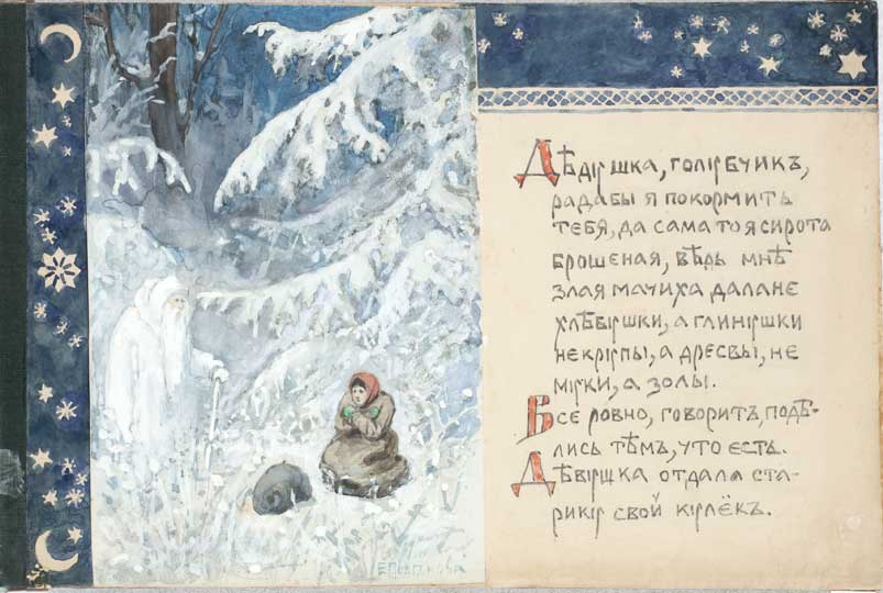 Because of Polenova’s relatively early death, many of her book illustrations were left unpublished. So it has been a real delight to discover the designs she made to illustrate Russian folk-tales (or fairytales as we usually say in English). These wonderful images allowed Polenova to indulge her passions for Russian landscape, architecture, folk traditions and wit all at the same time. She was very well aware of children’s book illustration in Western Europe and wanted to create something comparable for Russia. So having the chance to bring these works to a British public has been especially satisfying.