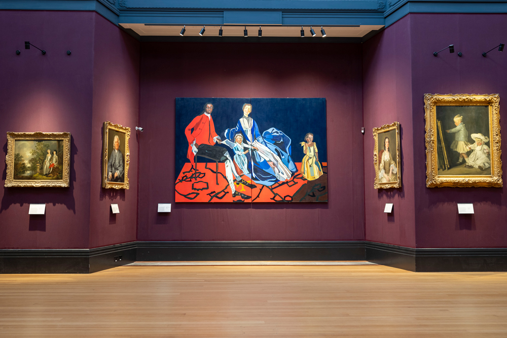 Installation view of An 18th-century Family (2022) by Joy Labinjo. Photo: © Fitzwilliam Museum, University of Cambridge; © the artist