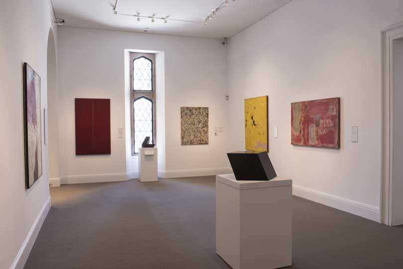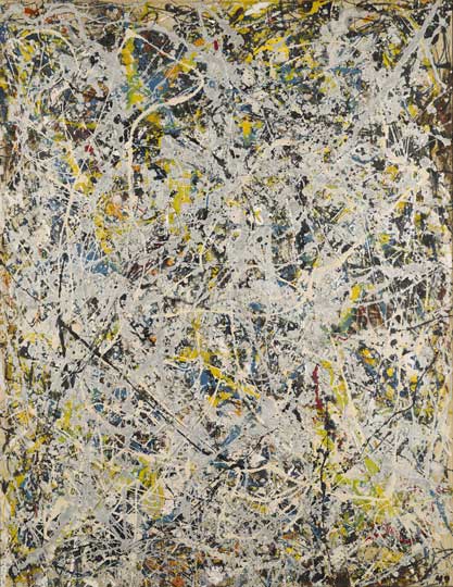 This signature Pollock drip painting is of modest scale, but you can easily get lost in the multi-coloured layers of stringy drips, highlighted with shimmering silver loops of paint. This work is part of a group of seven Abstract Expressionist paintings donated to the museum in 1967 by sculptor Tony Smith, who had just had his first solo museum exhibition (curated by Sam Wagstaff) the previous year. The paintings from this important gift are shown in a single gallery space that includes several small-scale Smith sculptures, and his large-scale Amaryllis (1965) visible on the grounds through the gallery window.