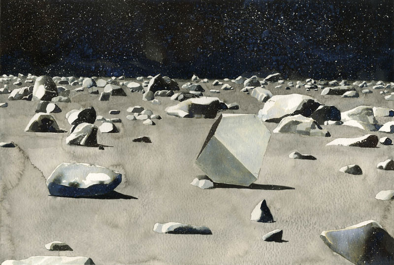 Platform is a new initiative of the EAF that provides a charming space for early-career artists to participate in the festival programme. This year’s four artists – Antonia Bañados, Ben Callaghan, Ross Hamilton Frew, and Jessica Ramm – were chosen by a panel of selectors following an open call. Particularly eye-catching are Bañados’s lovely watercolour space-scapes, inspired by the Atacama Desert of her Chilean homeland. In Ramm’s witty video, Hand Over Foot, four climbers awkwardly manoeuvre around a large, sculptural metal sphere (which resembles an outdated model of the atom) fitted with rock-climbing holds. The sphere itself sits like a piece of inorganic taxidermy inside the gallery – a strange, intriguing echo.