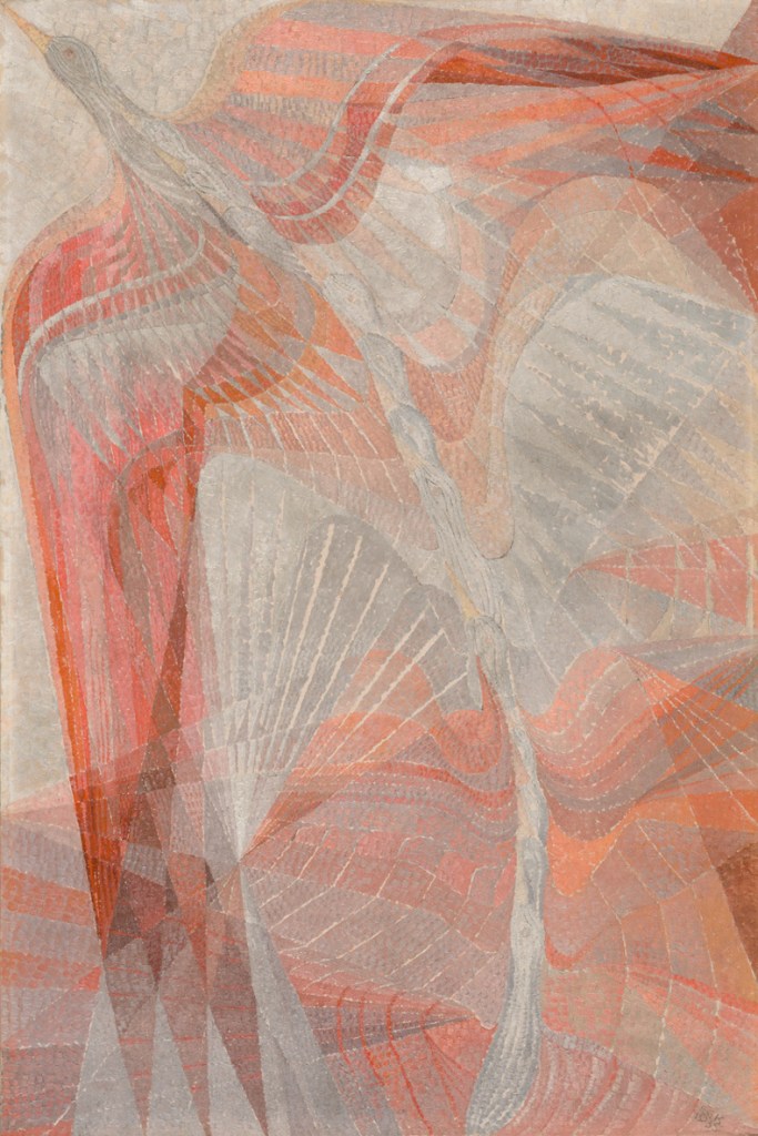Erika Giovanna Klien abstracts a bird’s movement into flowing patterns of subtle colour and harmonious rhythm, transforming feathers and flight into pure kinetic energy. A leading figure in Viennese kineticism – an avant-garde movement that depicted familiar objects in motion – the artist shifted her attention from mechanical to organic subjects. Here the bird’s flight becomes serene rather than industrial, its vibrancy captured through gentle abstraction rather than literal representation. Click here to read more.