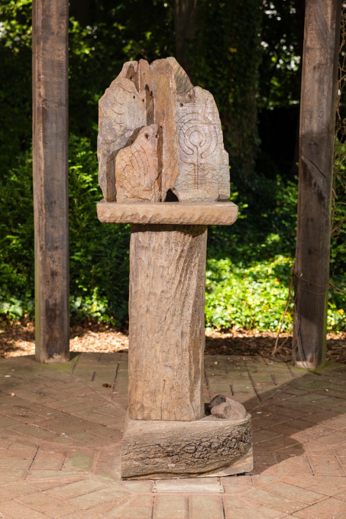 Christine Fox’s slate sculpture inhabits Charles Darwin’s former aviary at Murray Edwards College, where painted and engraved owls emerge from dark stone set into afrormosia wood. The Yorkshire-born artist built her forms to echo natural growth patterns and ancient mythology, using slate’s layered geology to suggest the accumulation of time and meaning. In Darwin’s aviary, the work links these watchful birds to observation and knowledge – the owl as a symbol of wisdom amid a wider reminder of the scientist’s careful attention to the natural world. Click here to find out more.