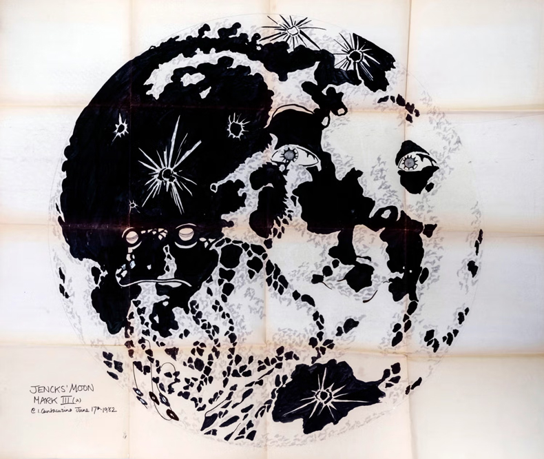 Commissioned by Charles Jencks for his extraordinary postmodern residence, Cantacuzino’s lunar etching transforms the moon into a benevolent face, accompanied by a three-legged toad taken from Chinese mythology. Drawing on the legend of Liu Hai, the man in the moon who lures the auspicious amphibian from its well with golden coins, this whimsical design reflects humanity’s age-old tendency to anthropomorphise celestial bodies. With its blend of traditional storytelling and imaginative use of architecture, it conceives of outer space as a habitat conducive to life. Click here to find out more on Bloomberg Connects.