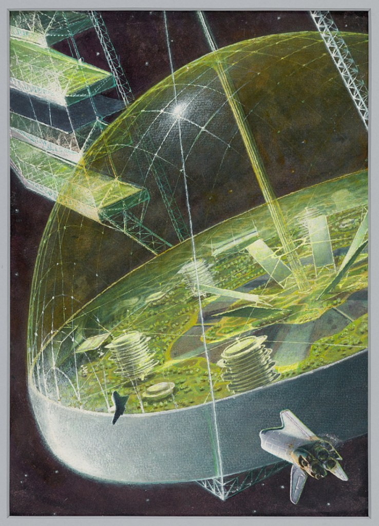 As an official Soviet space artist, Sokolov combined scientific precision and speculative thinking to create visions of humanity’s extraterrestrial future with startling verisimilitude. His meticulously researched paintings of orbital habitats and lunar settlements influenced both public perception and scientific planning for space colonisation. Working closely with cosmonauts to ensure accuracy, Sokolov demonstrated how art could serve as both propaganda and genuine vision. His space colonies appear simultaneously utopian and achievable, reflecting the optimism and confidence of an era when space habitation seemed merely a matter of political will and engineering prowess. Click here to discover more.