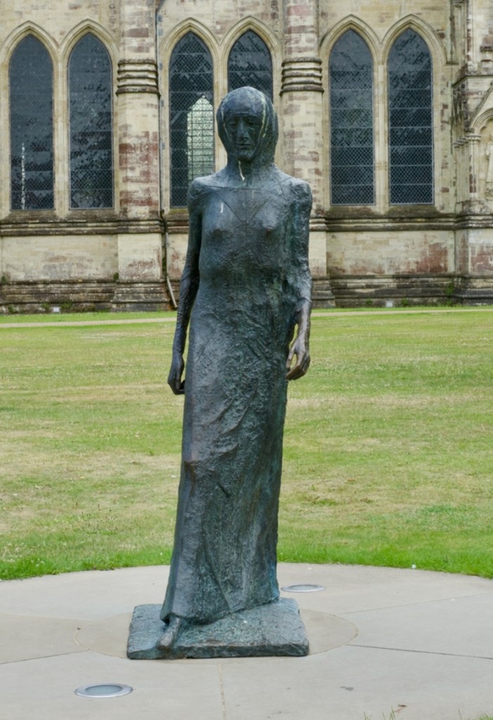 Frink’s Madonna stands on the slimmest of pedestals among visitors to Salisbury Cathedral, her face at eye level to make her seem more like an equal than an object of worship. The bronze figure strides forward with grim determination, her slender form echoing the gothic architecture behind while her rough-textured robes suggest both austerity and suffering. One of Britain’s most prominent female sculptors, Frink brought religious iconography down to earth, creating a Madonna who embodies endurance rather than serenity. Click here to discover more.