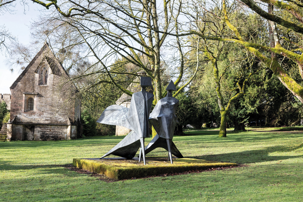 View of Jubilee IV (1985–87) by Lynn Chadwick in the grounds of Lypiatt Park, Gloucestershire. Photo: Tanguy Beurdeley; courtesy Lynn Chadwick Estate/Perrotin