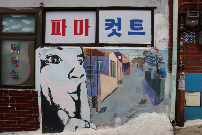 An untitled mural (n.d.) by an unknown artist in Ihwa Mural Village, Seoul, photographed in 2016. Photo: Kirk Siang via Flickr; published under Creative Commons licence CC BY-NC-ND 2.0