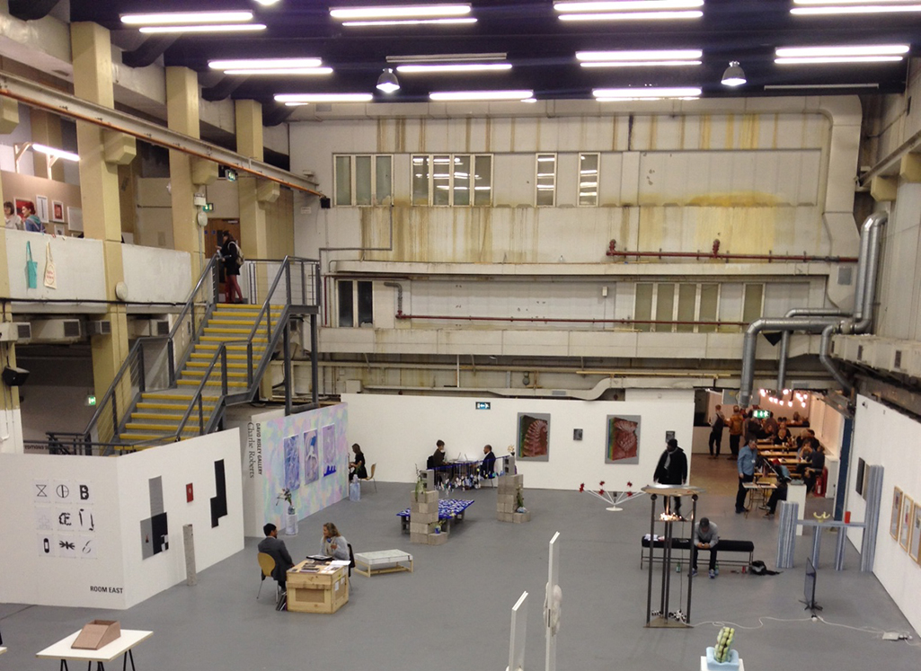 Alex Meurice of Slate Projects has curated ‘There’s No Place Like Homebase’, a neatly constructed exhibition of works by Lewis Betts, Oliver Hickmet and Rae Hicks. There’s a smart interplay here between the build of the stand and the places that these artists show or evoke: a wall drawing by Betts is still drying on site, like a recently graffitied wall – but with an alluringly provisional quality. Rae Hicks paints images of buildings and houses that have a childlike simplicity – but on a large scale, and with a bold palette that endows them with a compelling surrealism.