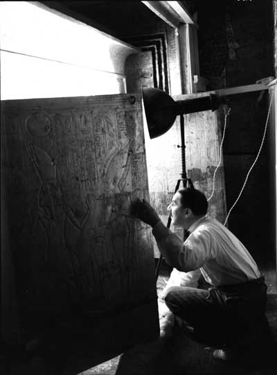 - Howard Carter and an unnamed Egyptian assistant inspect Tutankhamun’s innermost coffin in November 1922. Photo: Harry Burton; © Griffith Institute, University of Oxford