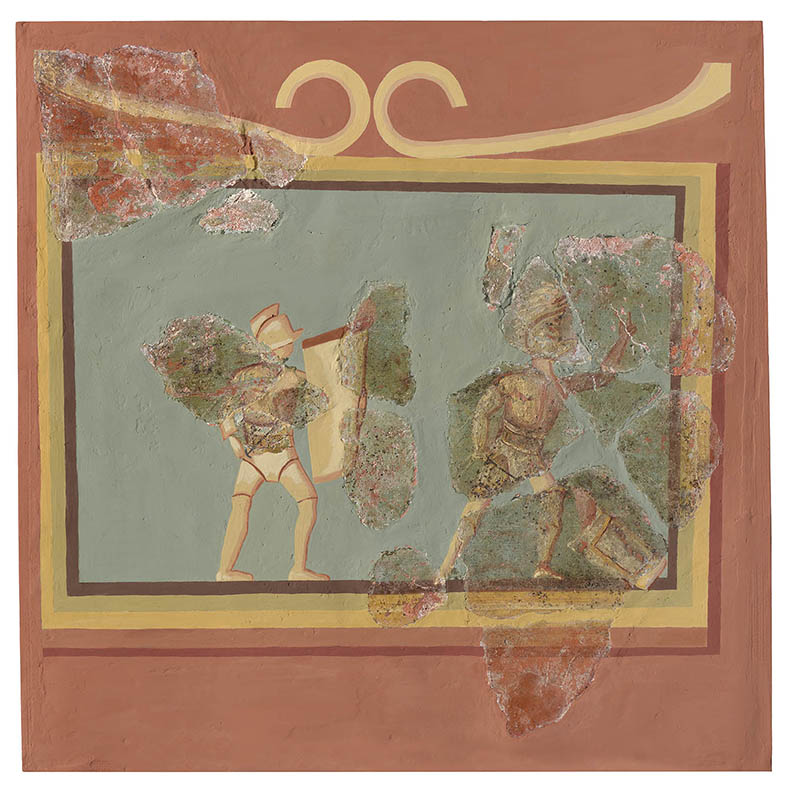 Reconstructed wall painting depicting combat between two gladiators, 1st century AD, Colchester. Photo: © Colchester and Ipswich Museum Service – Colchester Collection