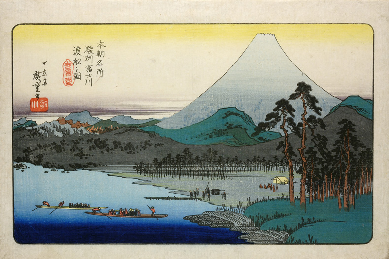 Ferry on the Fuji River, Suruga Province (c. 1832), Utagawa Hiroshige. Photo: © Trustees of the British Museum