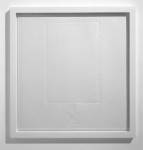‘We discovered many artworks which explored the application of pressure in ways which would not usually be considered as printmaking. We chose works which employ and expand upon traditional printmaking techniques and ask questions about what a print can be and do.’ Thus, the first room focuses on the two-dimensional, but considers printmaking expanded into different materials and functions. Richard Long’s photograph A Line Made by Walking records the pressure of his passage, walking up and down a patch of grass, but also makes the process permanent through printing on paper. Five Hour Cloud Drawing by Roger Ackling (who sadly died recently) used sunlight to burn his design into paper, while Langlands and Bell’s two pieces present ghostly building plans, simply embossed into the page.