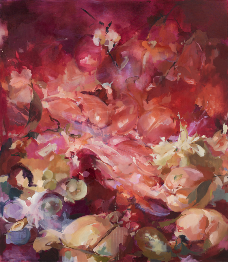 Flora Yukhnovich has rapidly risen to renown for her lush, layered paintings that reimagine the rococo through the lens of abstraction. ‘It’s capturing what the sensation of looking at the painting is, rather than its details and what they might mean,’ she told Apollo in 2020, describing the process of synthesising historic pictures in order to create her own. For her exhibition at the Ashmolean Museum in Oxford (until 14 January 2024), Yukhnovich has created a series of large canvases that draw from the Dutch and Flemish still lifes in the museum’s collection.