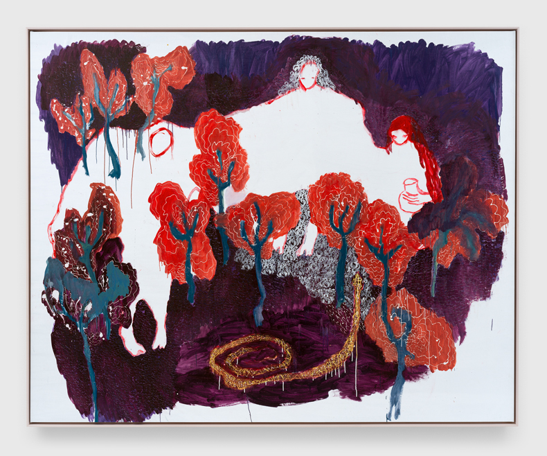 I have a little daughter so, when I wake up, I make porridge, she eats, and then we go to the studio. In front of my studio there’s a riverbed that doesn’t have any water, so it feels more like a forest. And there’s a big mountain behind my studio. So sometimes we take walks there, or we go there to pray for a while. Then we come back, and that’s when we start painting. That’s my routine.