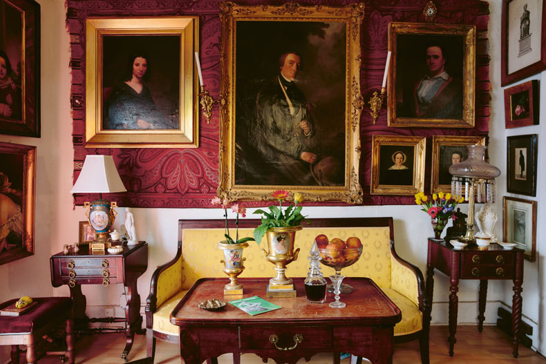 In New Orleans, the 40-something African American artist Andrew LaMar Hopkins has filled his otherwise stripped-back home with 18th- and 19th-century Louisiana portraits, French porcelain, a photo of a muscular swimmer and his own paintings.