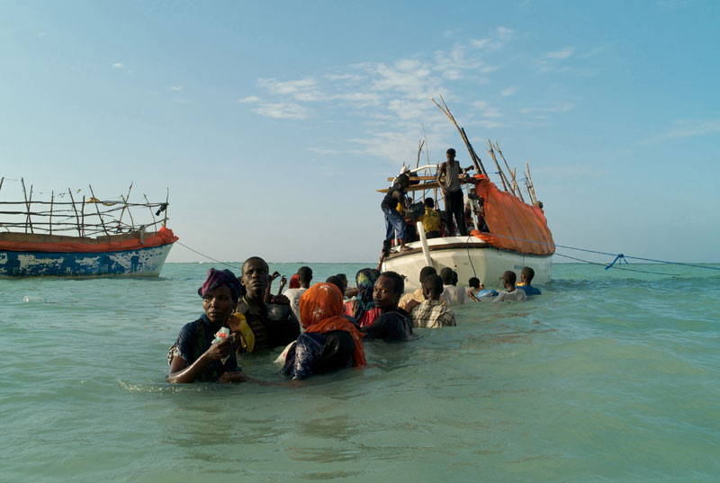 Somali refugees departing Shimbiro Beach to board smugglers’ boats to Yemen (April-December 2008, Shimbero, Somalia), from the series ‘A Million Shillings; Escape from Somalia’, Alixandra Fazzina. Courtesy Alixandra Fazzina ©Prix Pictet Ltd 2015