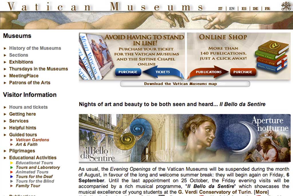 And what of Rome, the eternal city, cultural epicentre for over two millennia, birthplace of the Christian Church and home to the Stanze di Raffaello, Michelangelo’s Sistine Chapel and more Bernini sculptures that you can shake a stick at? Well…the Galleria Borghese has apparently decided to catalogue its collection with a mobile phone (these washed-out images hardly do their creators justice) and the Vatican Museums’ website now looks older than the Colosseum.