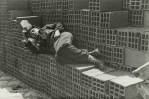 Krüger’s Paris photographs from 1935 reveal a young woman revelling in the smaller freedoms that had become part of her new life: tea crockery sets stack up, vinyl records fill a frame, and bunches of succulent fruit are the focus of another. Yet her captures of people are the more compelling and reveal the German’s deep-seated compassion for humanity. One man lazily lies reading upon a pile of bricks, a labourer cheekily grins at the camera, whereas Hungarian writer Charles Sirato ponders meditatively – just one of the exiled European intellectuals that she recorded, alongside Dr. Kurt Rosenfeld and trade unionist Gustav Faber.