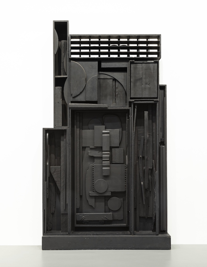 In 1990 the Museum Wiesbaden held an exhibition with the rather loose title ‘Women Artists of the 20th Century’, which included several works by Louise Nevelson, who had died two years earlier. It is testament to her stature today that the same museum is now hosting a solo exhibition of her art. In part a reaction against the gestural flamboyance of Abstract Expressionism, Nevelson’s sculptures – assemblages of found objects, such as wardrobes, doors and planks of wood, which the artist spray-painted a uniform colour, frequently black – can look monotonous at first. Nevelson brought out the uncanny, menacing side of these objects, however, with sticks of wood often arranged to resemble missiles or blades, for example, and titles such as Artillery Landscape accentuating the sense of danger. Seen together, these sculptures become much eerier. Ten of these, as well as some 50 collages by Nevelson, are on display here (31 October–15 March 2026).