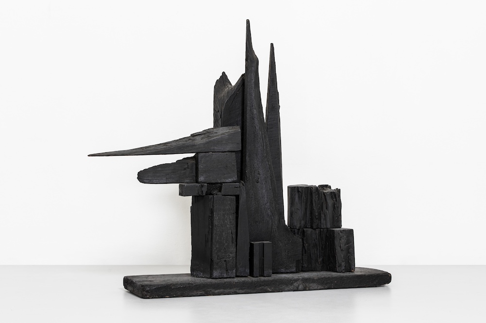 In 1990 the Museum Wiesbaden held an exhibition with the rather loose title ‘Women Artists of the 20th Century’, which included several works by Louise Nevelson, who had died two years earlier. It is testament to her stature today that the same museum is now hosting a solo exhibition of her art. In part a reaction against the gestural flamboyance of Abstract Expressionism, Nevelson’s sculptures – assemblages of found objects, such as wardrobes, doors and planks of wood, which the artist spray-painted a uniform colour, frequently black – can look monotonous at first. Nevelson brought out the uncanny, menacing side of these objects, however, with sticks of wood often arranged to resemble missiles or blades, for example, and titles such as Artillery Landscape accentuating the sense of danger. Seen together, these sculptures become much eerier. Ten of these, as well as some 50 collages by Nevelson, are on display here (31 October–15 March 2026).