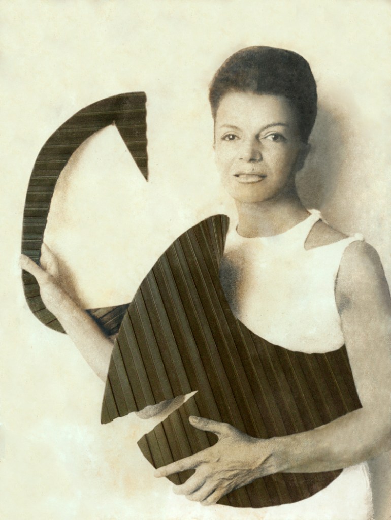 Lygia Clark with her sculpture Soft Work (1964). Photo: Sérgio Zalis; © Associação Cultural O Mundo de Lygia Clark