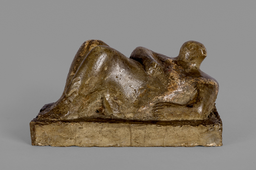 Into this settled world of idealised realism burst the émigrés Jacob Epstein and Henri Gaudier-Brzeska with powerful, abstracted sculptures, influenced by African, Indian and Assyrian collections in the British Museum, and by the modernism of Brâncuşi. Ezra Pound acclaimed the new British sculptural avant-garde in an essay of 1914 called, like Gosse’s, ‘The New Sculpture’. In the 1920s, the experiments of Moore, John Skeaping and Barbara Hepworth with free carving furthered the evolution of a distinctively British modernist sculpture. Hepworth learned to carve in Rome, where she met Skeaping, who became her first husband. Gradually, naturalistic forms gave way to more abstract sculptures. Meanwhile, for Moore, direct carving – as opposed to carving by a craftsman working from a model – expressed a vision of the sculptor’s craft that emphasised the human hand and a responsiveness to materials. It was not until after the Second World War that he was able to work on a large scale with bronze. His Reclining Figure: Festival, made for the Festival of Britain in 1951, marked the first time, he said, ‘in which I succeeded in making form and space sculpturally inseparable’.