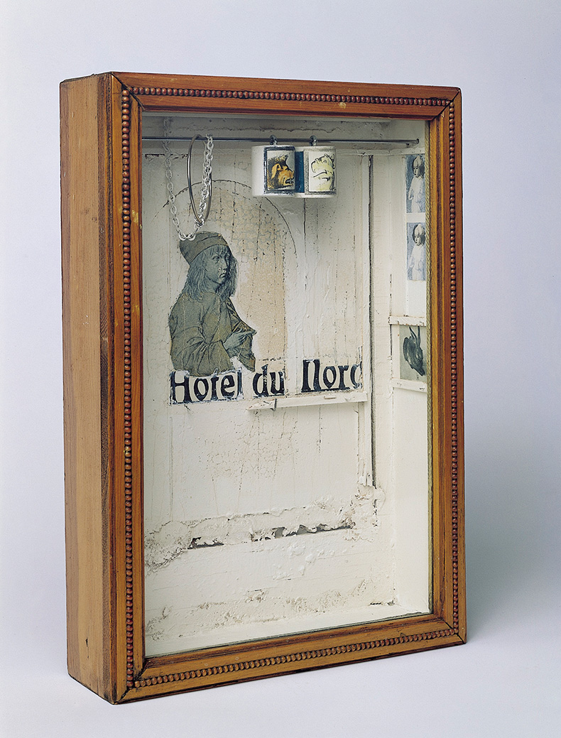 Hotel du Nord (Little Dürer) (c. 1950), Joseph Cornell. Norton Simon Museum, Pasadena. © 2022 The Joseph and Robert Cornell Memorial Foundation/Licensed by VAGA at Artists Rights Society (ARS), NY
