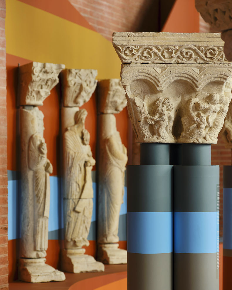 There is already something approaching contemporary art at the museum: the Romanesque hall just off the cloister. The room is filled with 96 columns in shades of brown, orange and blue, each one topped by a carved Romanesque capital brought to the museum from endangered, restored or destroyed churches around Toulouse: the city’s cathedral, the basilica of Notre-Dame de la Daurade, and the basilica of Saint-Sernin, the only one of the three that still stands today in something resembling its original 11th-century form. These capitals, which depict everything from saints to biblical scenes and Stations of the Cross to monster-headed birds, are some of the oldest pieces in the museum; the columns, and the coloured lampshades that hang over each one, are the most up-to-date works, designed by the Cuban-born artist Jorge Pardo in 2014. While the installation predated Dalon’s tenure, this ‘dialogue between the 12th and the 21st centuries’, as she describes it, is in tune with her desire to make the museum a ‘living place’.