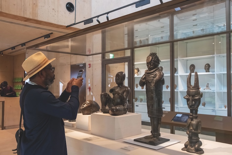 Germany, despite the claims of the Oba’s supporters that it was duped into handing over its money, still seems committed to MOWAA. Other donors were impressed by what they saw during the brief viewing before the protest. ‘The building is great, the objects are displayed wonderfully, the labels are thoughtful,’ says a curator from a leading museum. All this, regrettably, is in contrast to the NCMM’s long-standing and cash-strapped National Museum in Benin City, which has just hosted an exhibition, ‘Restitution in Motion’, of some recently returned Bronzes. Ancient plaques were crudely attached to walls; a precious ivory mask, returned from Germany, sat in a Perspex case beneath a precariously detached lid. ‘Heartbreaking,’ says one Nigerian artist. ‘Not ideal,’ admits a European museum director who is in favour of restitution.