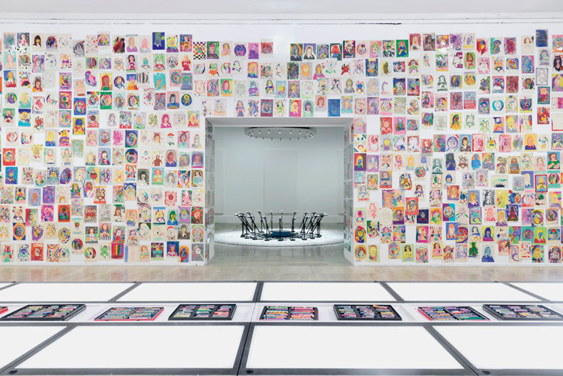 This time, Beer set up a recording studio next to the drawing studio, in one of the museum’s permanent collection rooms. Each of the 3,600 French children has been asked to record themself either talking about the paintings or making music in response, using only their voice and sometimes percussion. ‘It’s incarnating this idea of art and music being fundamentally connected,’ Beer tells me. ‘There’s a lot of music in that museum that is not recognised or celebrated.’ Phase one of the project comprised the drawing and recording; phase two is the projection of the drawings on the gallery walls – each drawing is a frame, still projected at 12 frames per second – accompanied by a sound mix of the recordings.