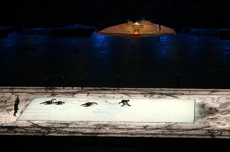 Although the historical variety show directed by Danny Boyle for the 2012 London Olympics has many admirers, it fell short for your roving correspondent for purely art-historical reasons. And while Beijing in 2008 might be best remembered for the scale of the fireworks display – created by the artist Cai Guo-Qiang – it also contained a genuinely remarkable piece of art: Shen Wei’s Scroll Painting, a performance that recreated an ink-and-wash painting before our eyes – with a handful of dancers and horde of LED lights.