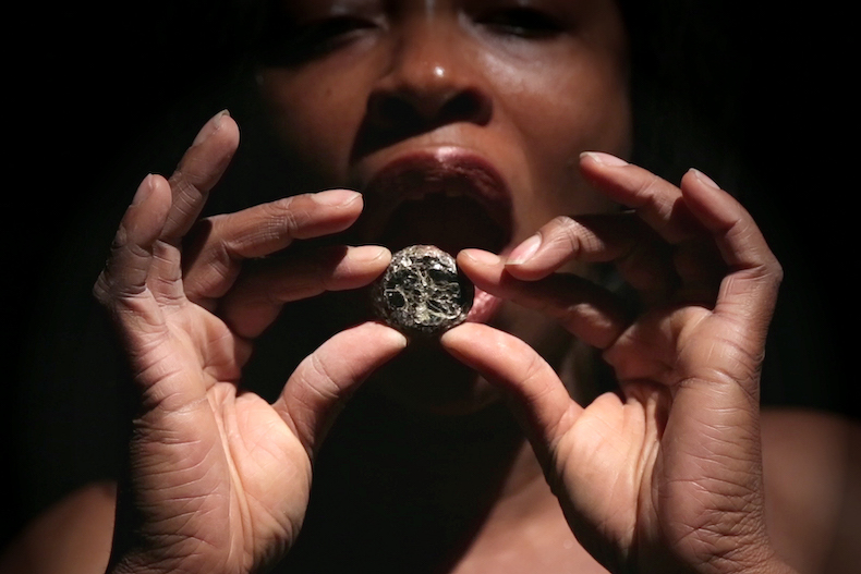 One of the earliest pieces featured in the exhibition, the artist’s first solo presentation in a French museum (travelling to Lausanne in April), Fattening Room is an unexpected but fitting introduction to her work. Spanning a 30-year career, the exhibition includes drawings, tapestries, installations and a handful of performance pieces that capture Nkanga’s enduring concerns with the structures that shape and disrupt our connection with the natural world and the layers of history that link one part of the world to another.