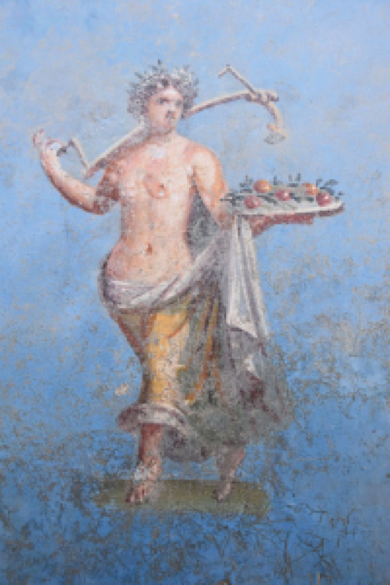 This is Insula (block) 10 of Regio IX, and since digging started here early last year it has yielded finds to delight specialists and spectators alike: walls of cinnabar red, Egyptian blue and charcoal black painted with mythological figures, animals and slender columns; gladiatorial graffiti, stucco serpents and all the paraphernalia of daily Roman life, including the remains of a fish stew. Most sensational was the discovery of a fresco seemingly depicting a pizza, which generated a huge amount of interest and had the likes of Neapolitan pizzaiolo Gino Sorbillo and the Rome-based food writer Rachel Roddy attempting to recreate it.
