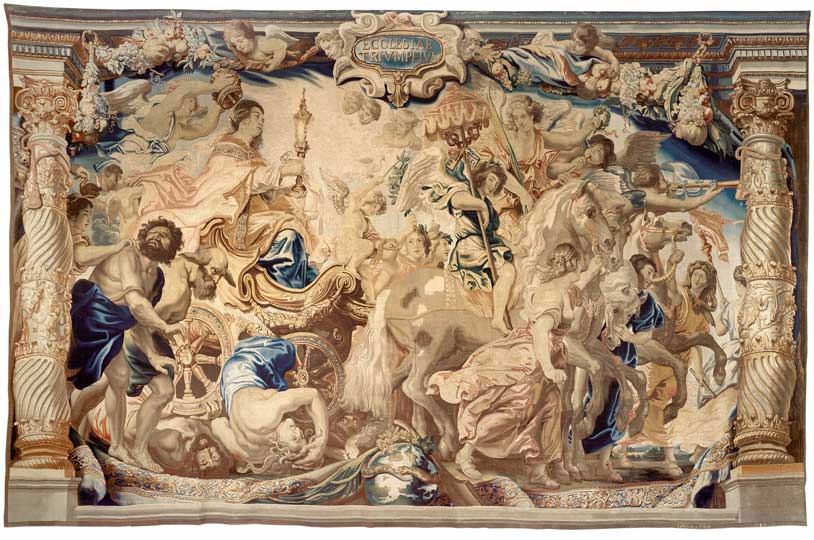 Tapestries were the principal way of displaying wealth, power, magnificence, or even piety when given to a monastery. Rulers sometimes kept tapestry docents on hand to educate visiting diplomats on their master’s extravagant hangings. Designed by top artists from Raphael to Rubens, most were woven in northern Europe.