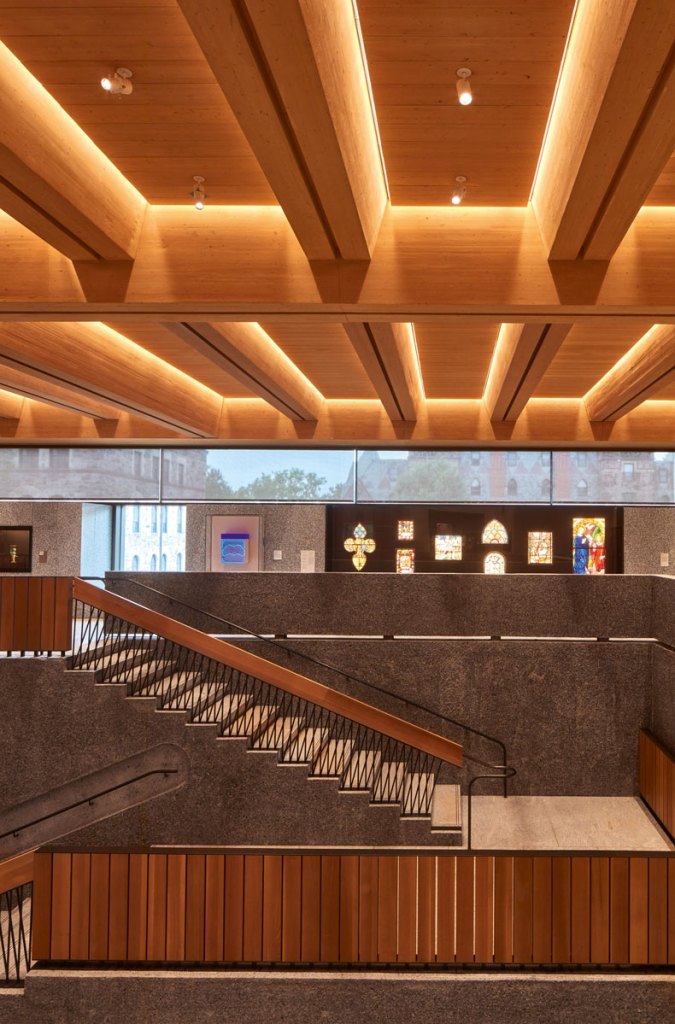Ease of access also guides the layout of the museum, with entrances on all four sides – a rarity among new museum buildings, Steward says. The pedestrian arteries that students use to traverse the campus continue through the building in ‘art walks’ that intersect the structure, with works from the collection installed along these routes.