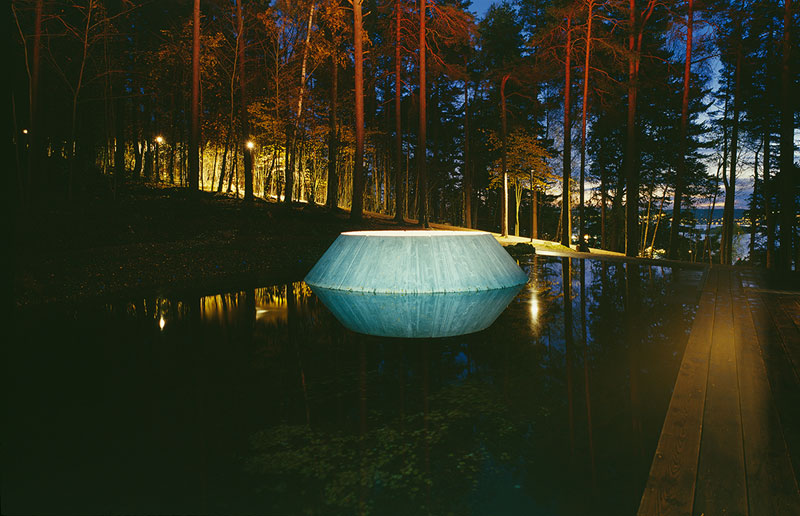 There is even an abundance of site-specific room-sculptures, so that you have different ways not just of looking at art, but also of looking out of art at the surroundings. There is Dan Graham’s glass pavilion, Per Inge Bjørlo’s claustrophobic steel bunker, and a James Turrell ‘Skyspace’ dug in beneath a small pool.
