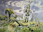 This foray ended just as abruptly in 1944 when he returned to landscape. He wrote to his New York dealer, Frank Rehn, that he would give him ‘more sounds and dreams and – yes, I’m going to make people smell what I want them to, and with visual means.’ For the rest of his life he made intensely romantic and sensual pictures such as Midsummer Caprice (1945), which suggests the constant sounds and movement in apparently quiet nature, and Early Spring (1966–7), which captures a transitional moment in nature, given spirituality with the golden halo over the trees.