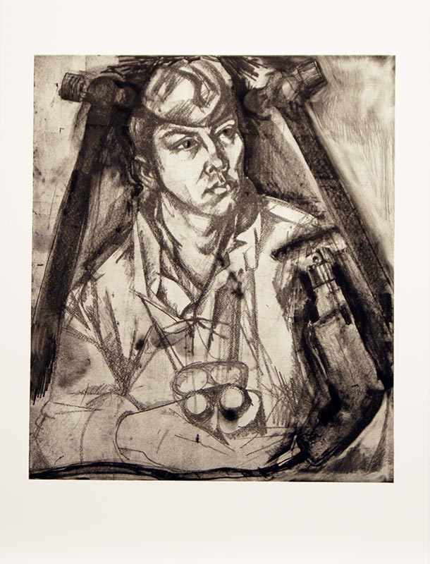 In the second space – completely cut off from the first by a partition wall – is ‘A History of Communism’, a series that Dine has worked on for two years. Some time ago, two printer friends presented the artist with 100 lithographic stones found in what was once a Socialist art academy in East Germany. Dine was immediately taken by the images, and decided to appropriate them into his own work.