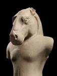 The Chinese had plenty of trading and monastic relations with the region, but in terms of culture this is, above all, a tale of Indian influence. Indian monks, sailors and merchants braved the Bay of Bengal waves to introduce the philosophies, rituals and artistic blueprints of Buddhism and Hinduism to Southeast Asia. Each kingdom, it seems, mixed this cultural basket of goodies with existing animistic beliefs to develop their own sculptural styles, their own cults. One was Ganesh as the powerful and dangerous Ganapati (represented here by three dynamic sculptures); another was Vishnu’s final avatar Kalkin (a monumental, sleek horse-headed figure from South Cambodia is on display); still another is Krishna raising Mount Govardhan (as seen in the almost Hellenistic, over life-sized, humanist figure found in a rock-cut cave at Phnom Da in 1944).